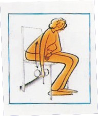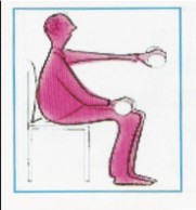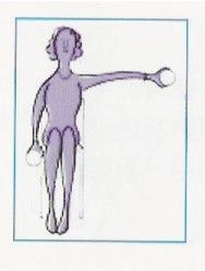 肩前上舉 開始時坐正,把啞鈴放在大腿上,手心向下。以右手慢慢的將啞鈴向前舉到肩膀的高度,緩緩放下到大腿,然後換左手。 |