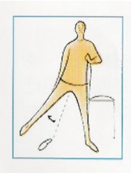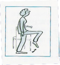 腳部彎曲運動 站在椅子後面,兩手放在椅背上。姿勢站穩後,腳跟慢慢往臀部彎曲,直到小腿成水平姿勢,慢慢放下。重複三到五次,改換左腳。 |