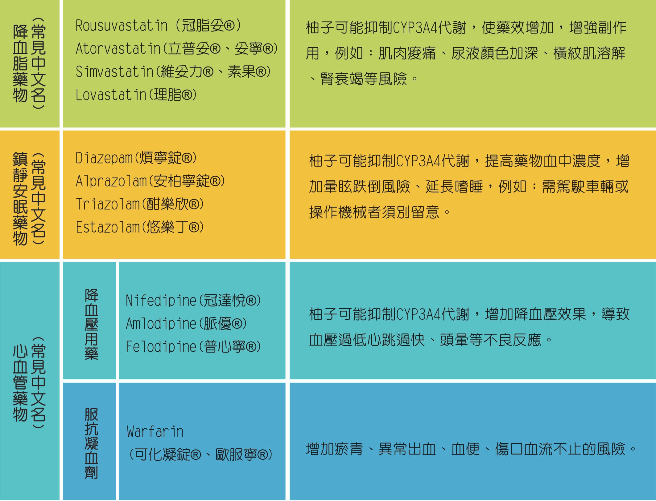 在食用柑橘類水果(柚子、葡萄柚、橘子、柳丁)前,有哪些藥物應留意?