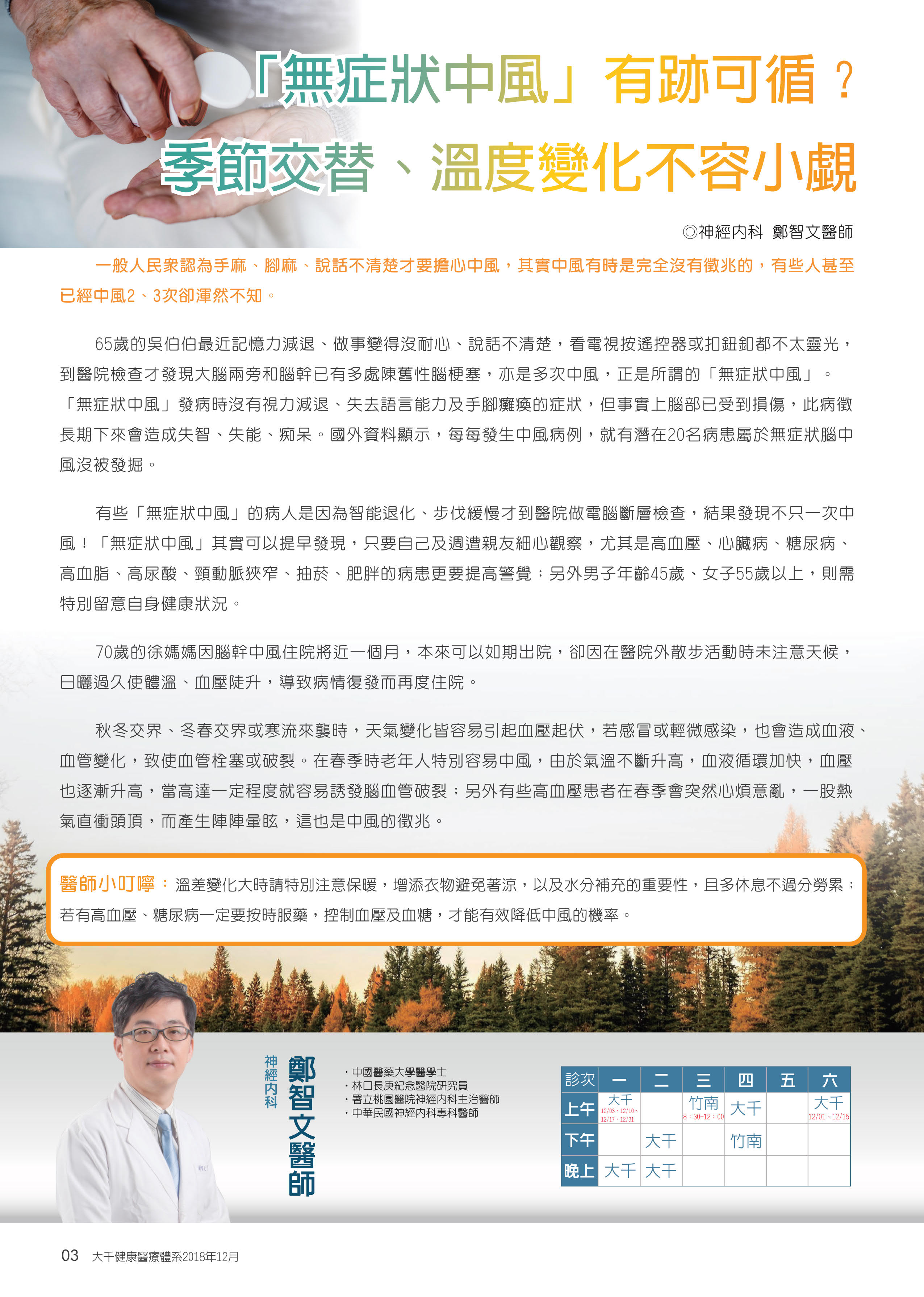 「無症狀中風」有跡可循? 季節交替、溫度變化不容小覷
