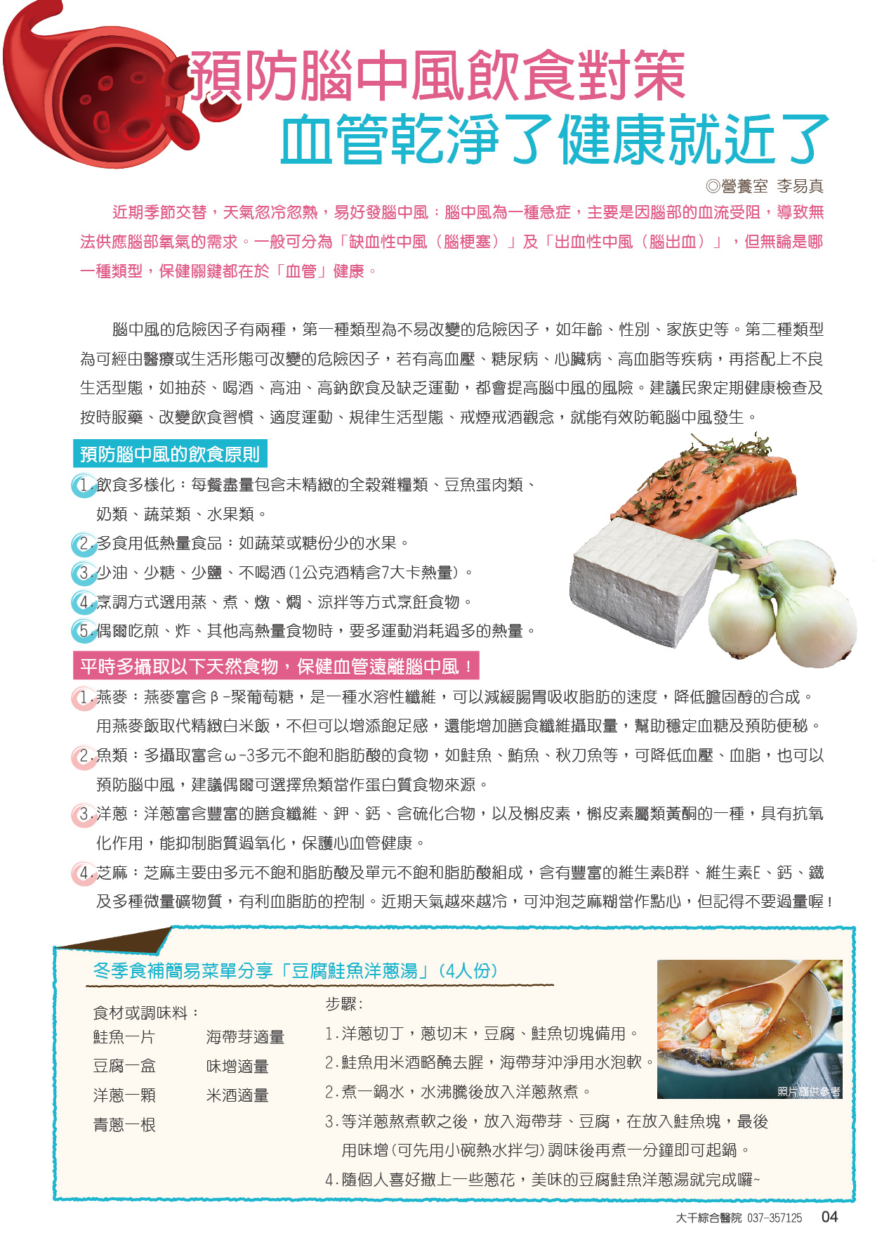 預防腦中風飲食對策 -- 血管乾淨了健康就近了