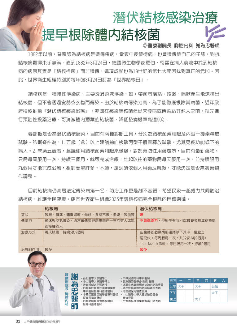 潛伏結核感染治療 提早根除體內結核菌