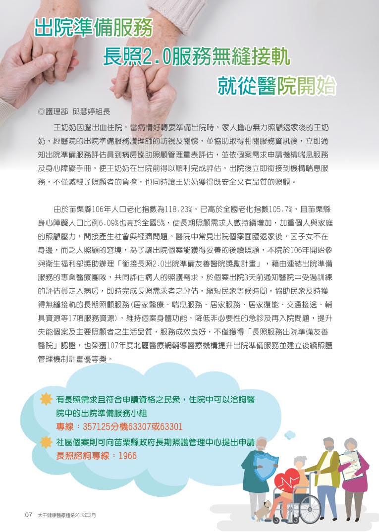 出院準備服務 長照2.0服務無縫接軌 就從醫院開始