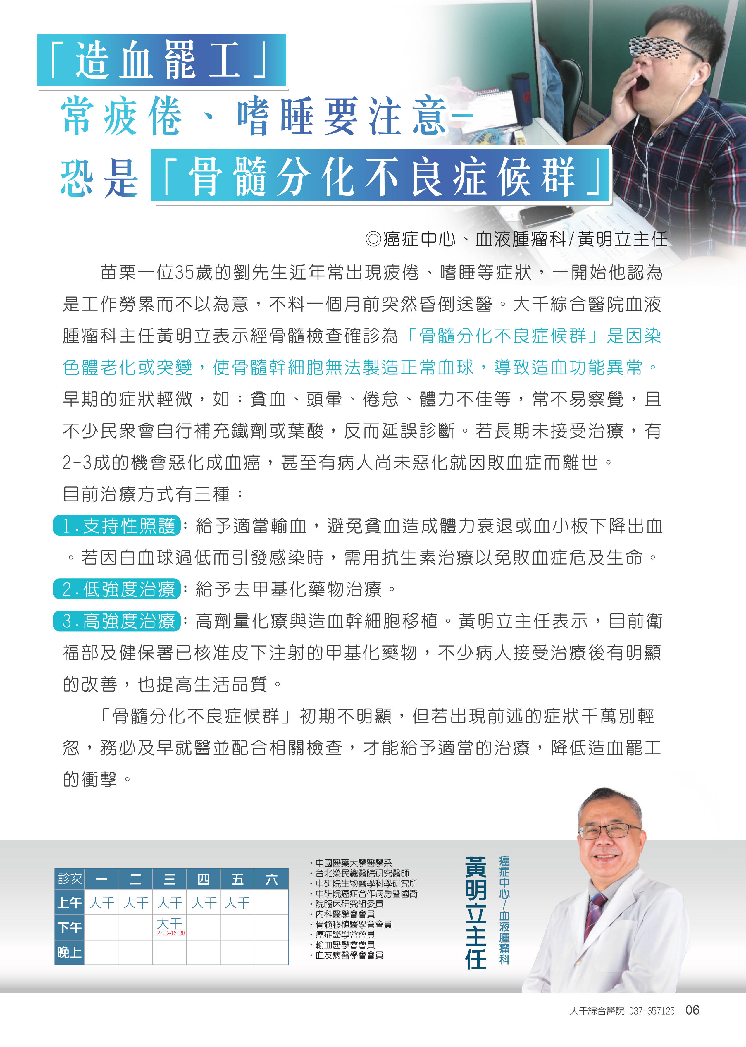 常疲倦、嗜睡要注意 恐是「骨髓化生不良症候群」