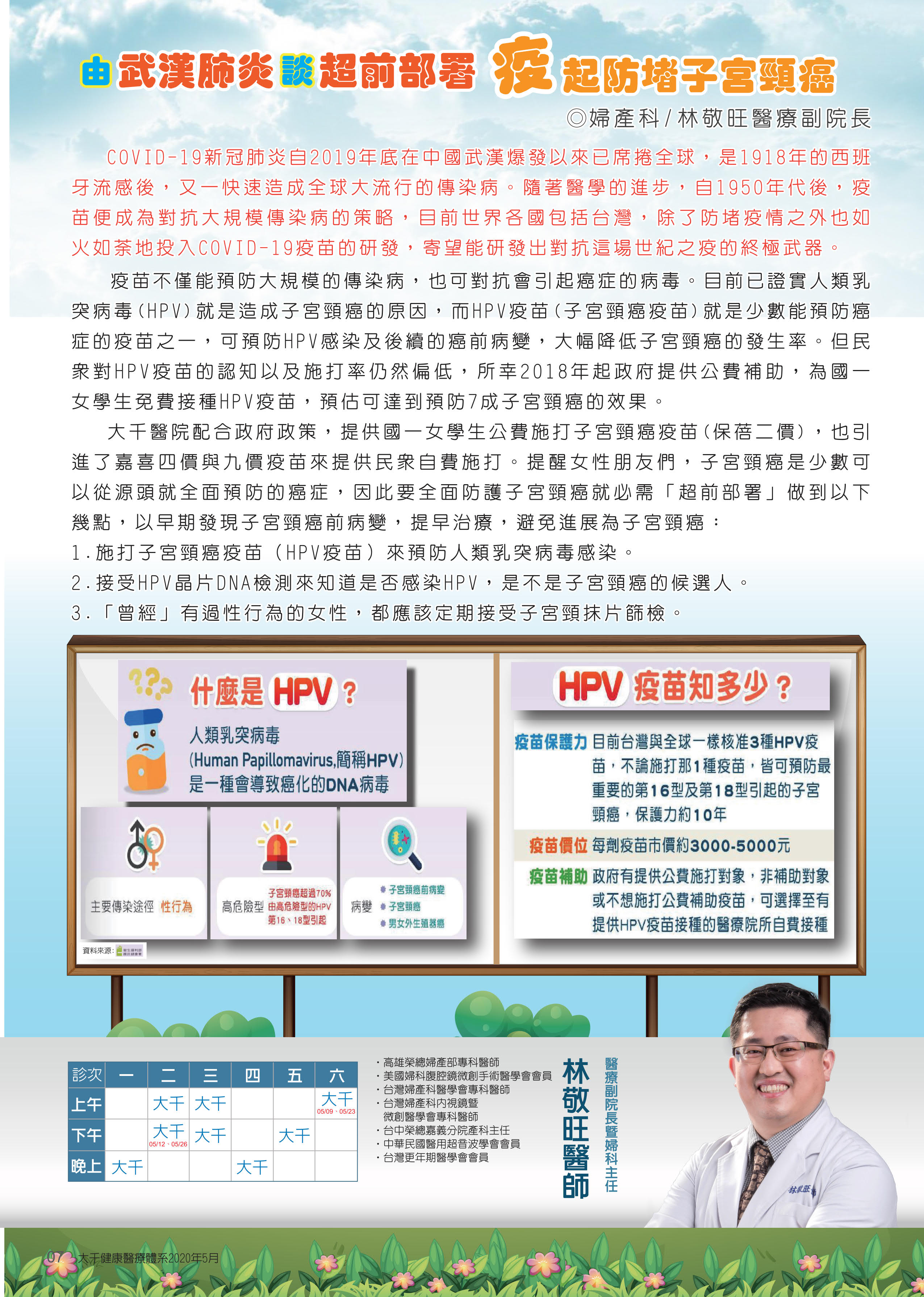 由武漢肺炎談超前部署,防堵子宮頸癌