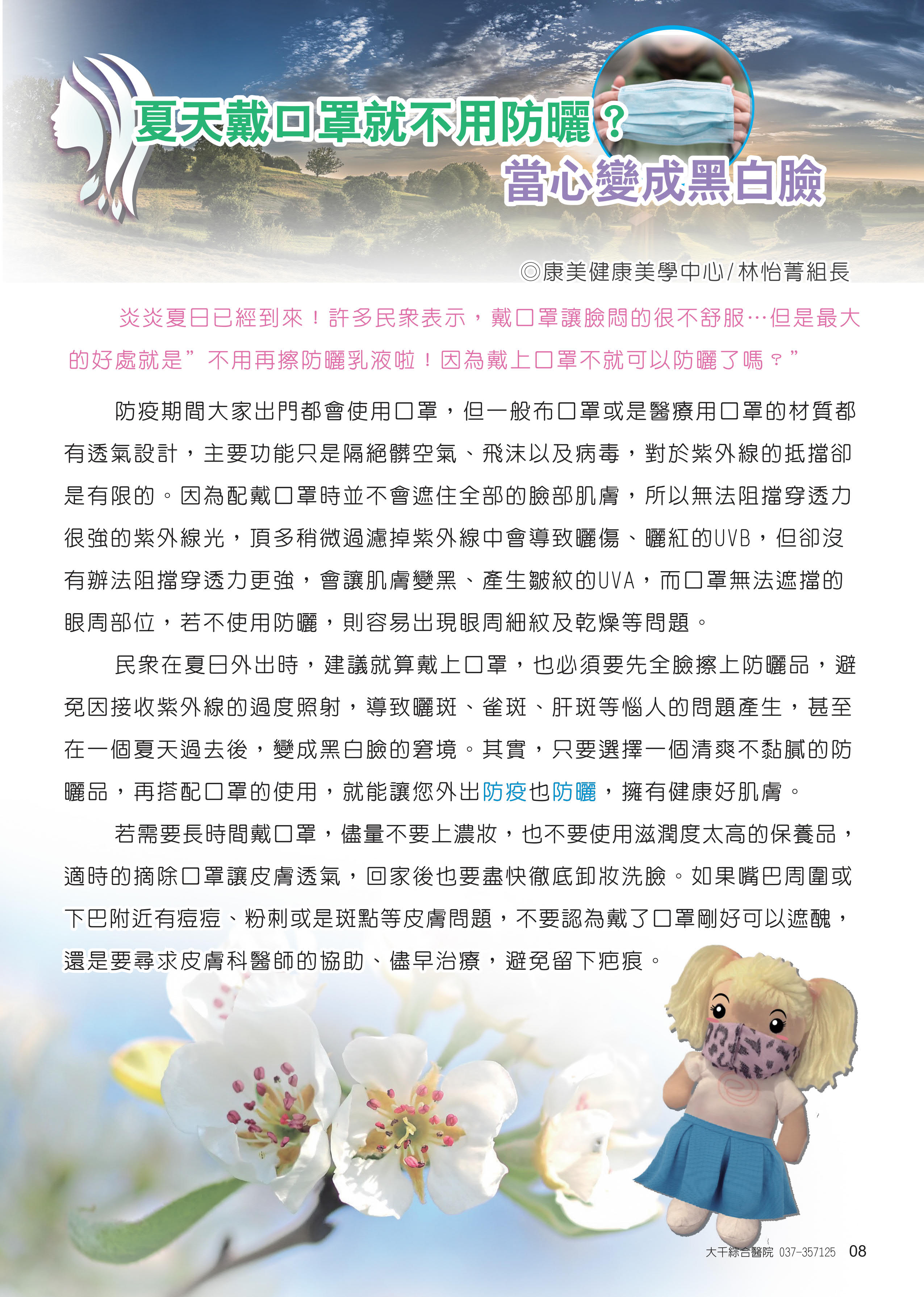 夏天戴口罩就不用防曬?當心變成黑白臉