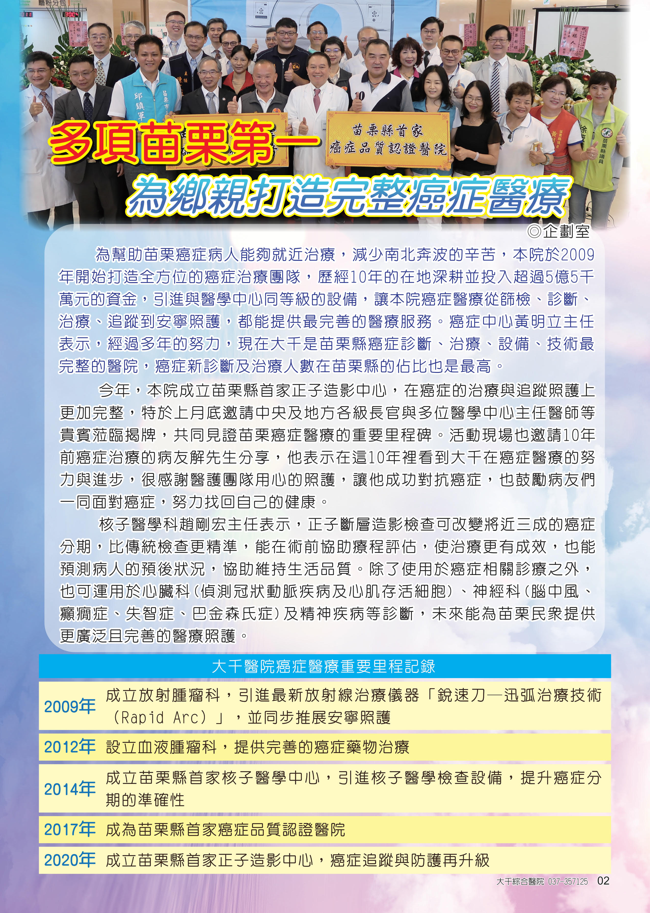 多項苗栗第一 為鄉親打造完整癌症醫療