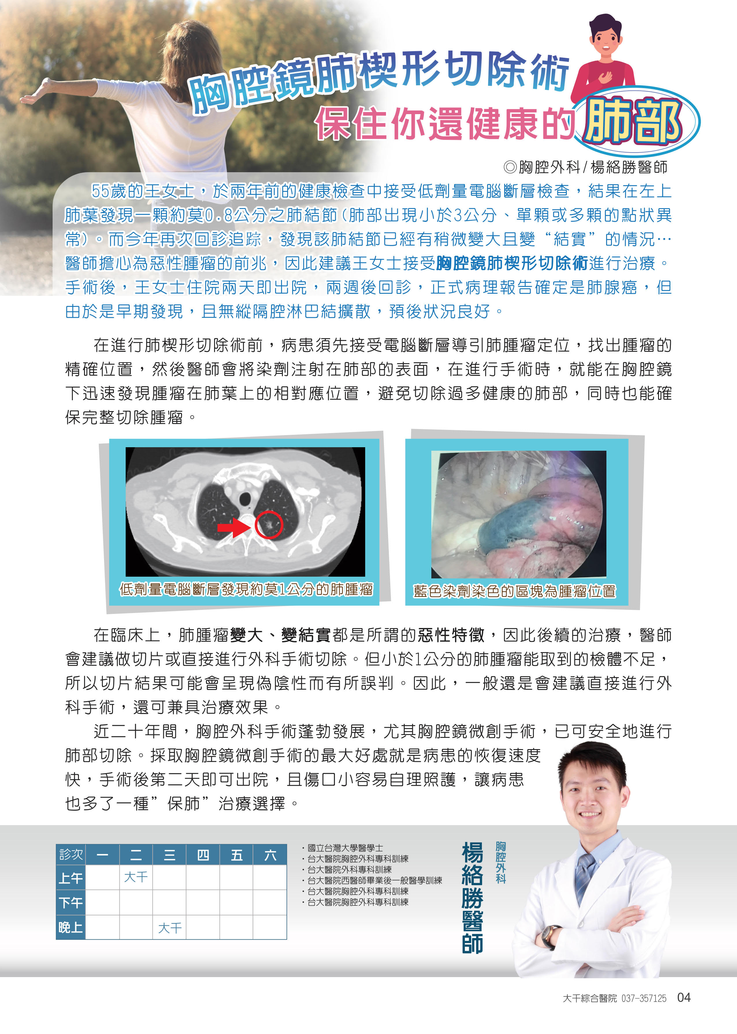 胸腔鏡肺楔形切除術 保住你還健康的肺部