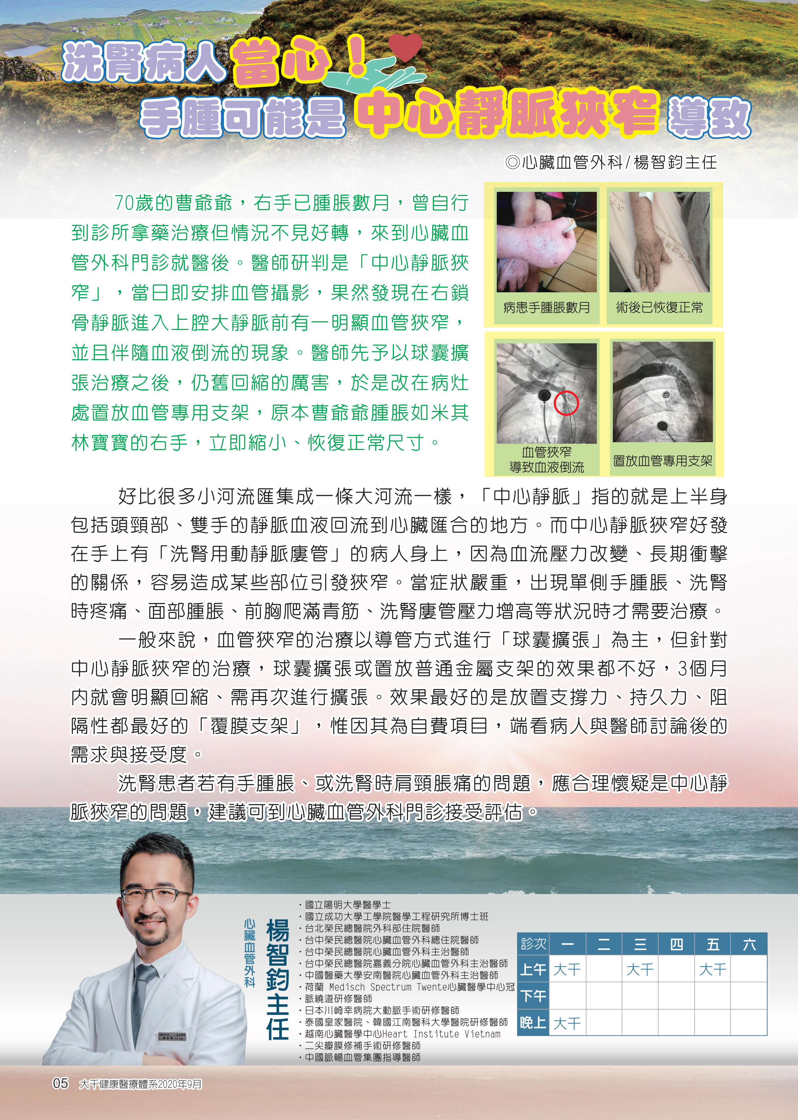 洗腎病人當心!手腫可能是中心靜脈狹窄導致