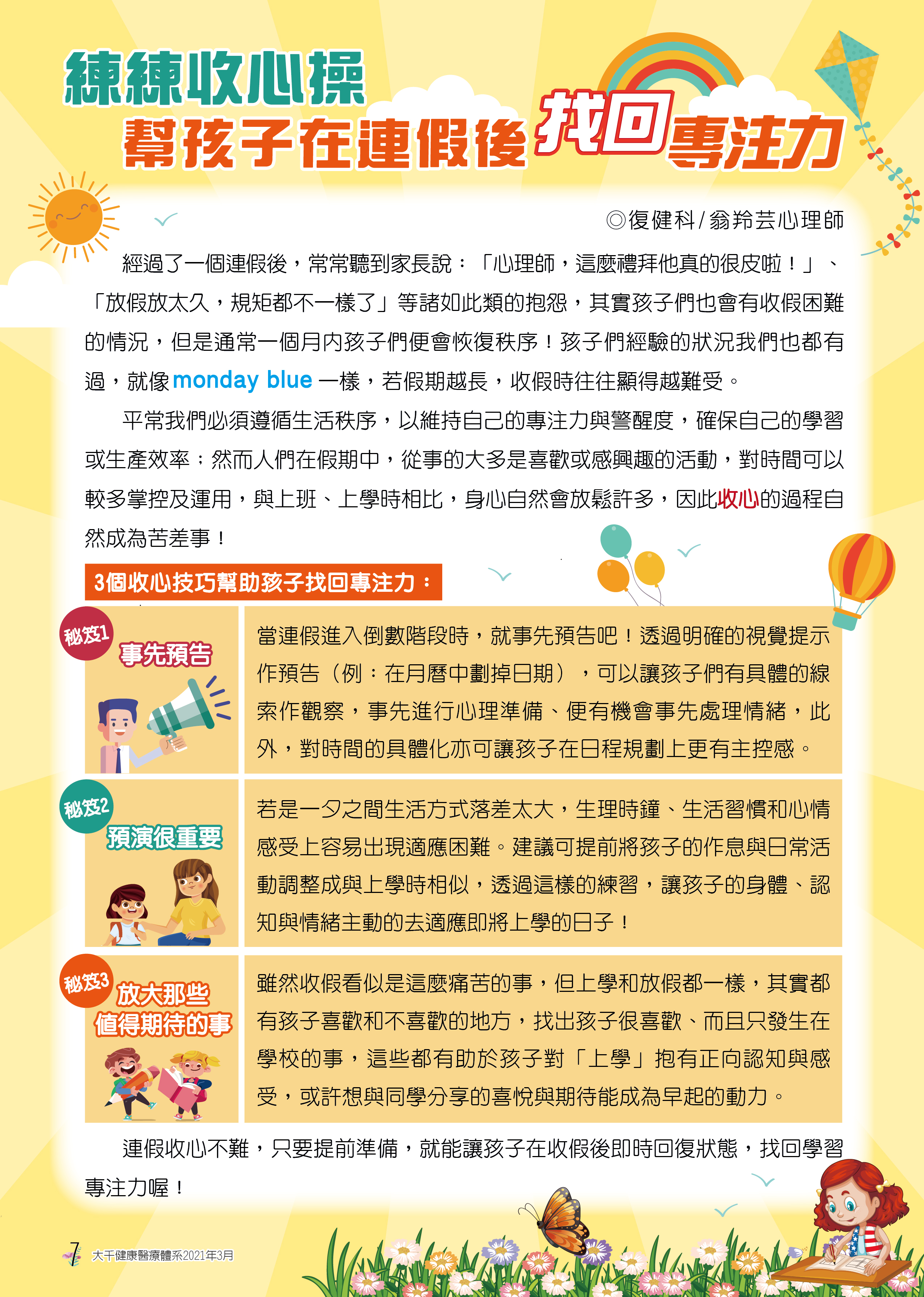 練練收心操 幫孩子在連假後找回專注力