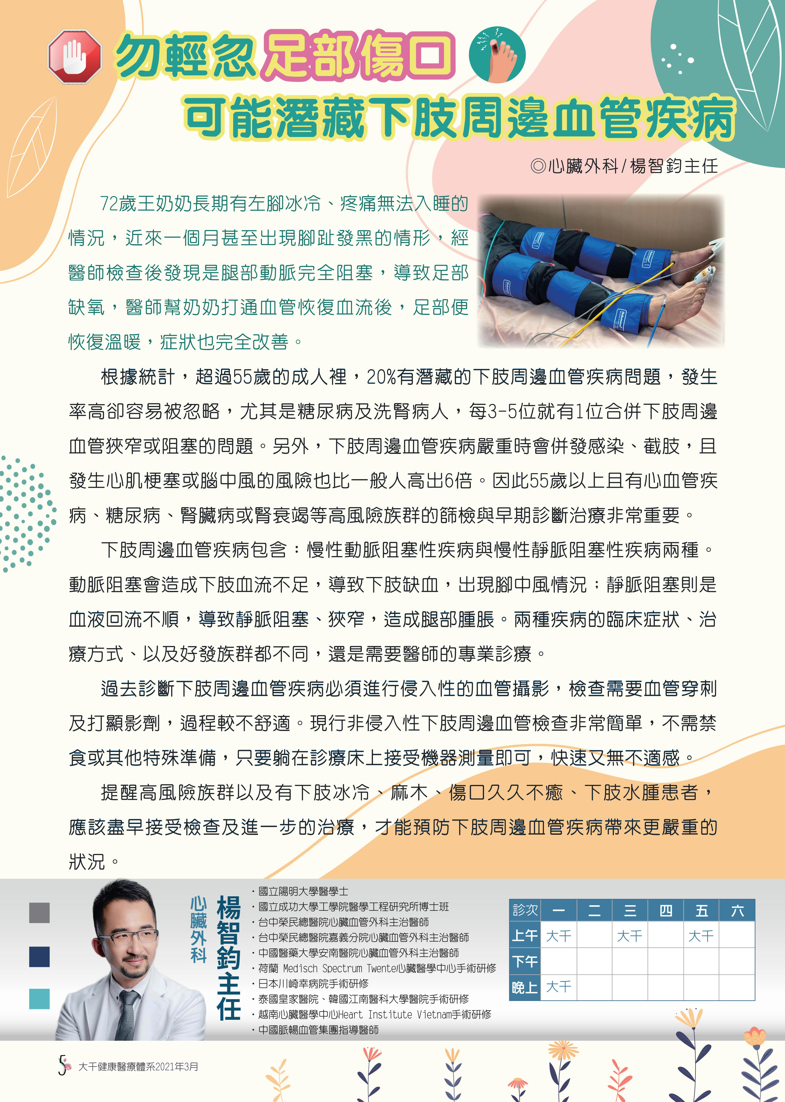 勿輕忽足部傷口 可能潛藏下肢周邊血管疾病