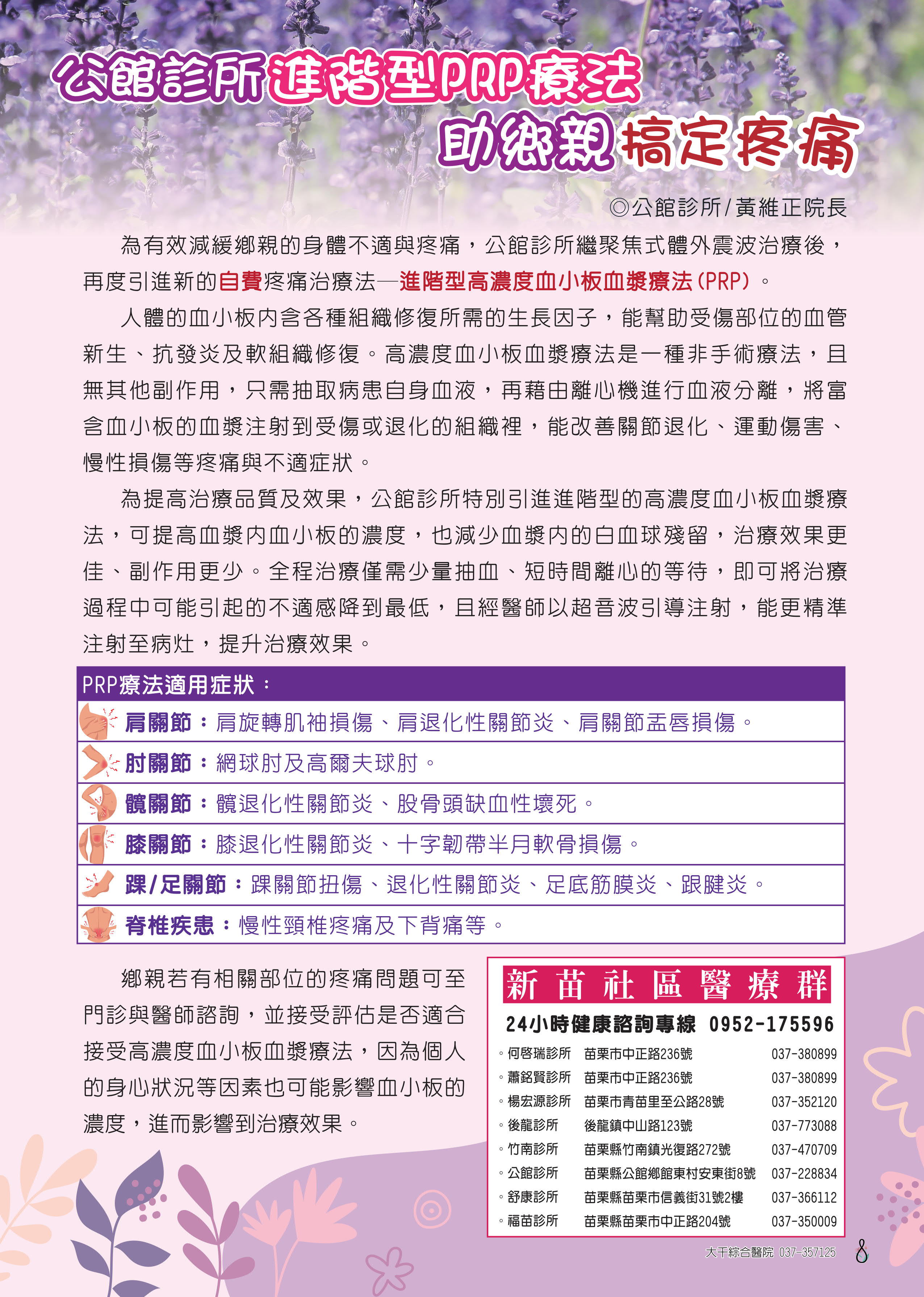 公館診所進階型PRP療法 助鄉親搞定疼痛