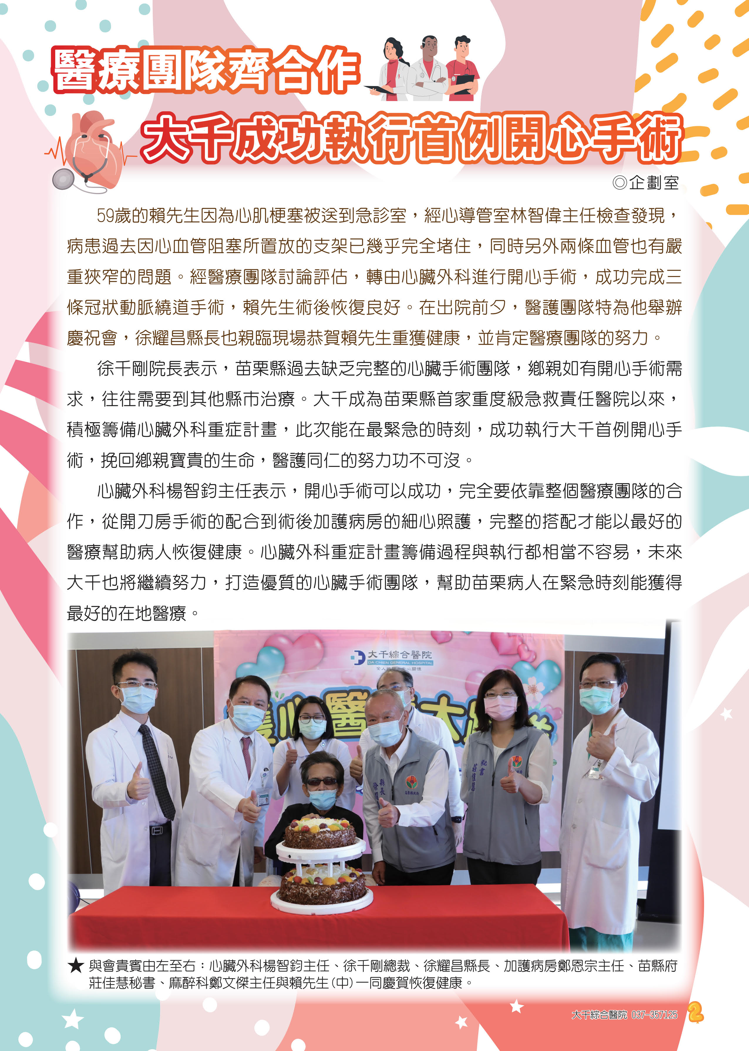 醫療團隊齊合作 大千成功執行首例開心手術