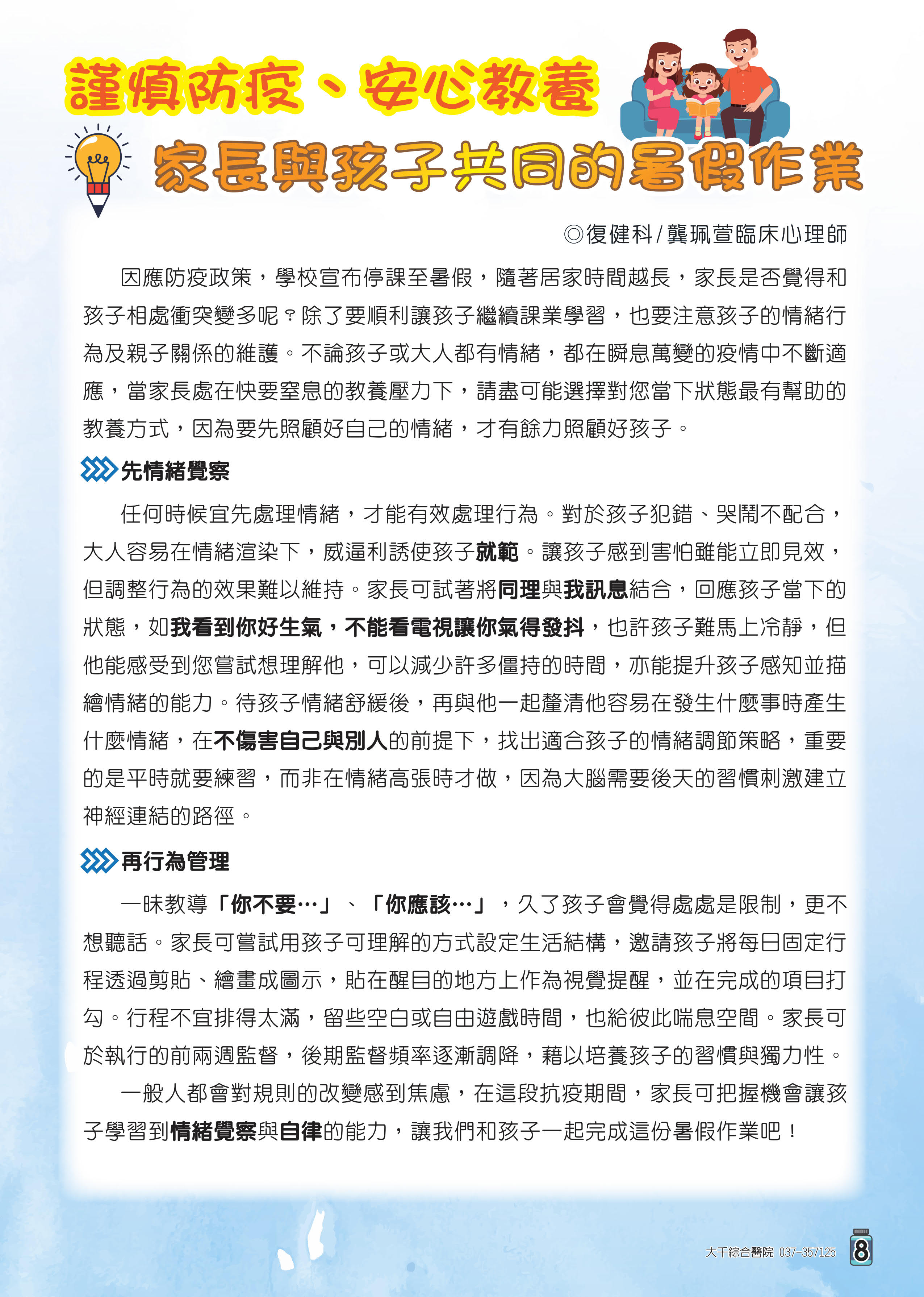 謹慎防疫、安心教養 家長與孩子共同的暑假作業