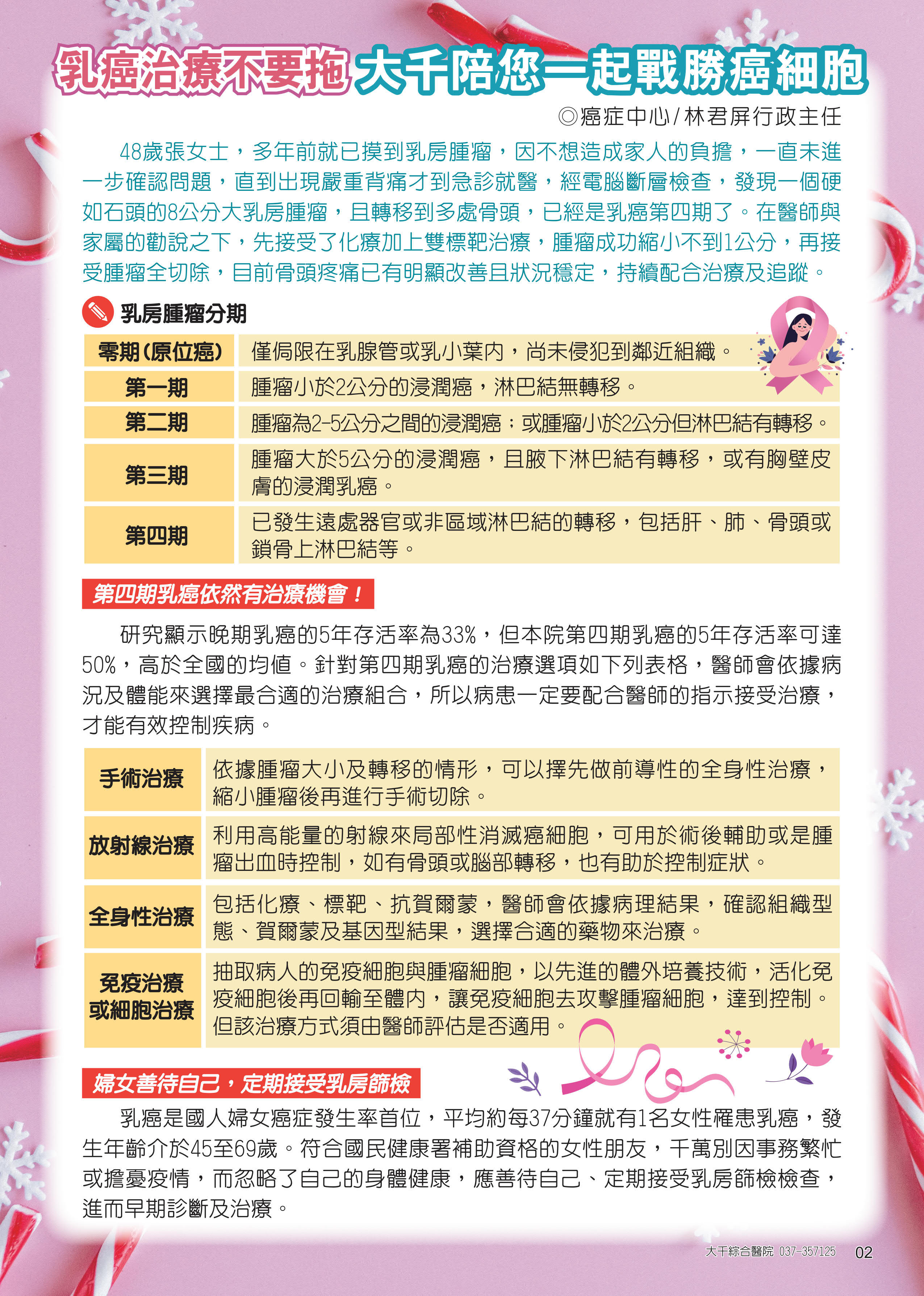 乳癌治療不要拖 大千陪您一起戰勝癌細胞