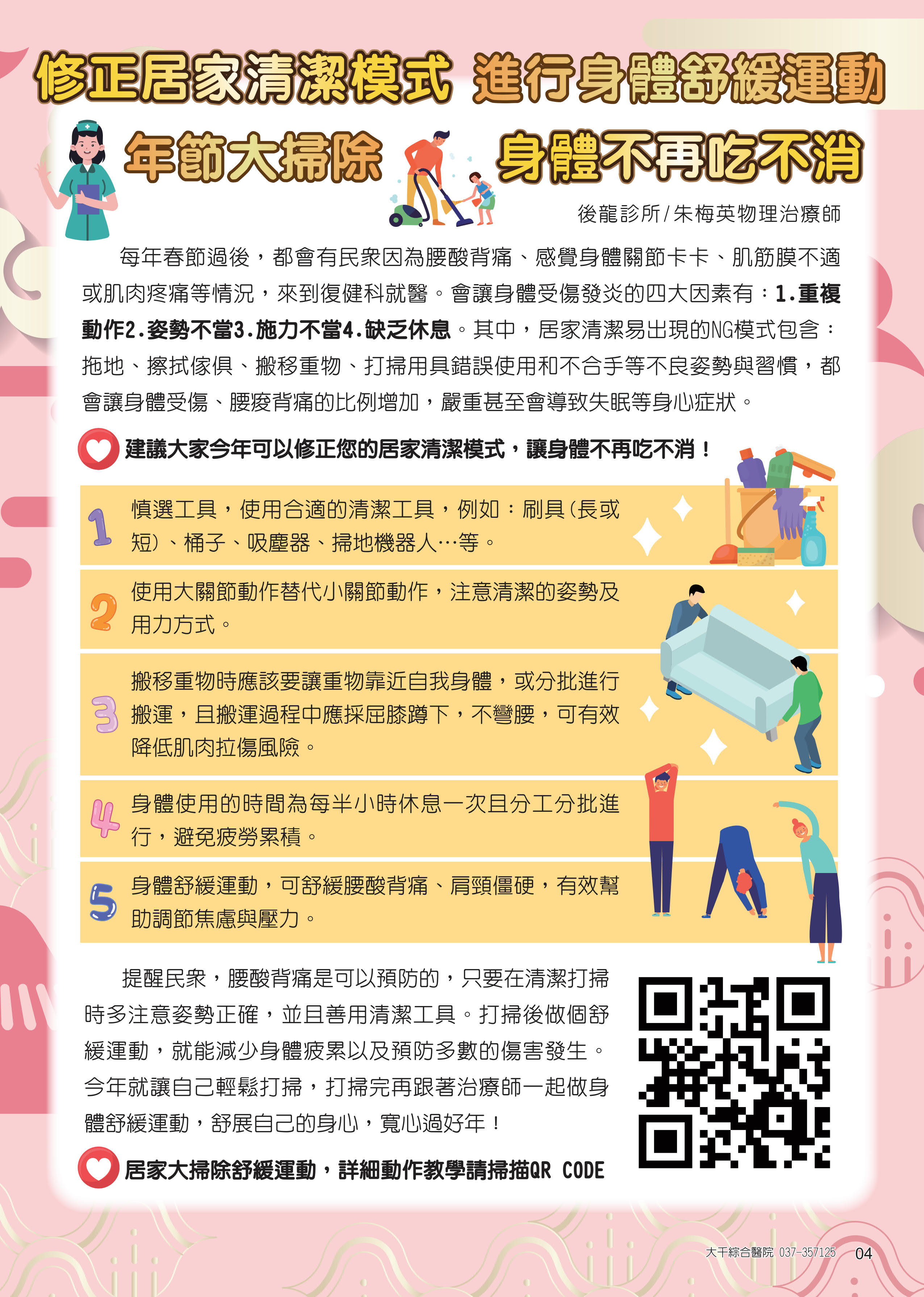 修正居家清潔模式 進行身體舒緩運動