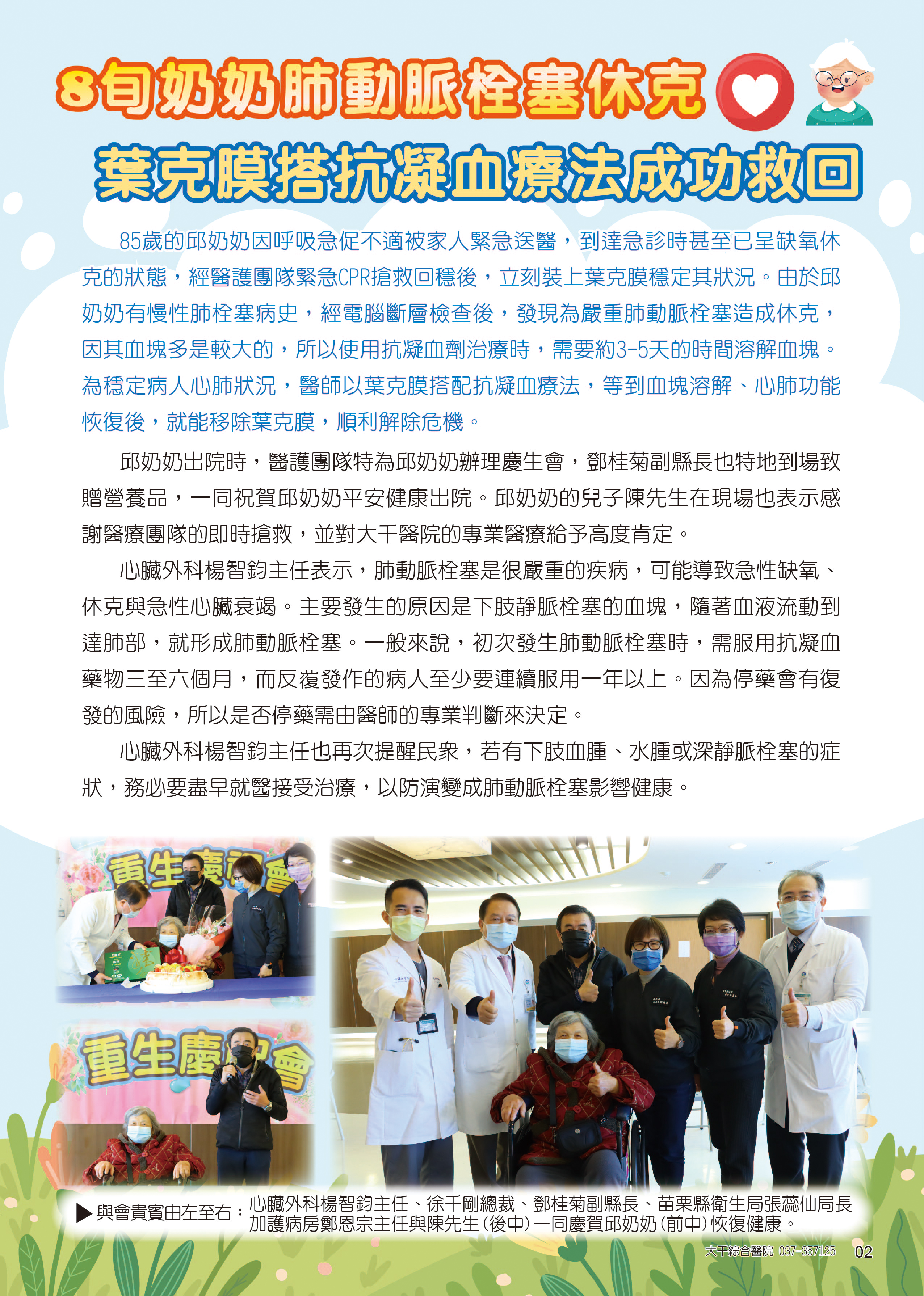 8旬奶奶肺動脈栓塞休克,葉克膜搭抗凝血療法成功救回