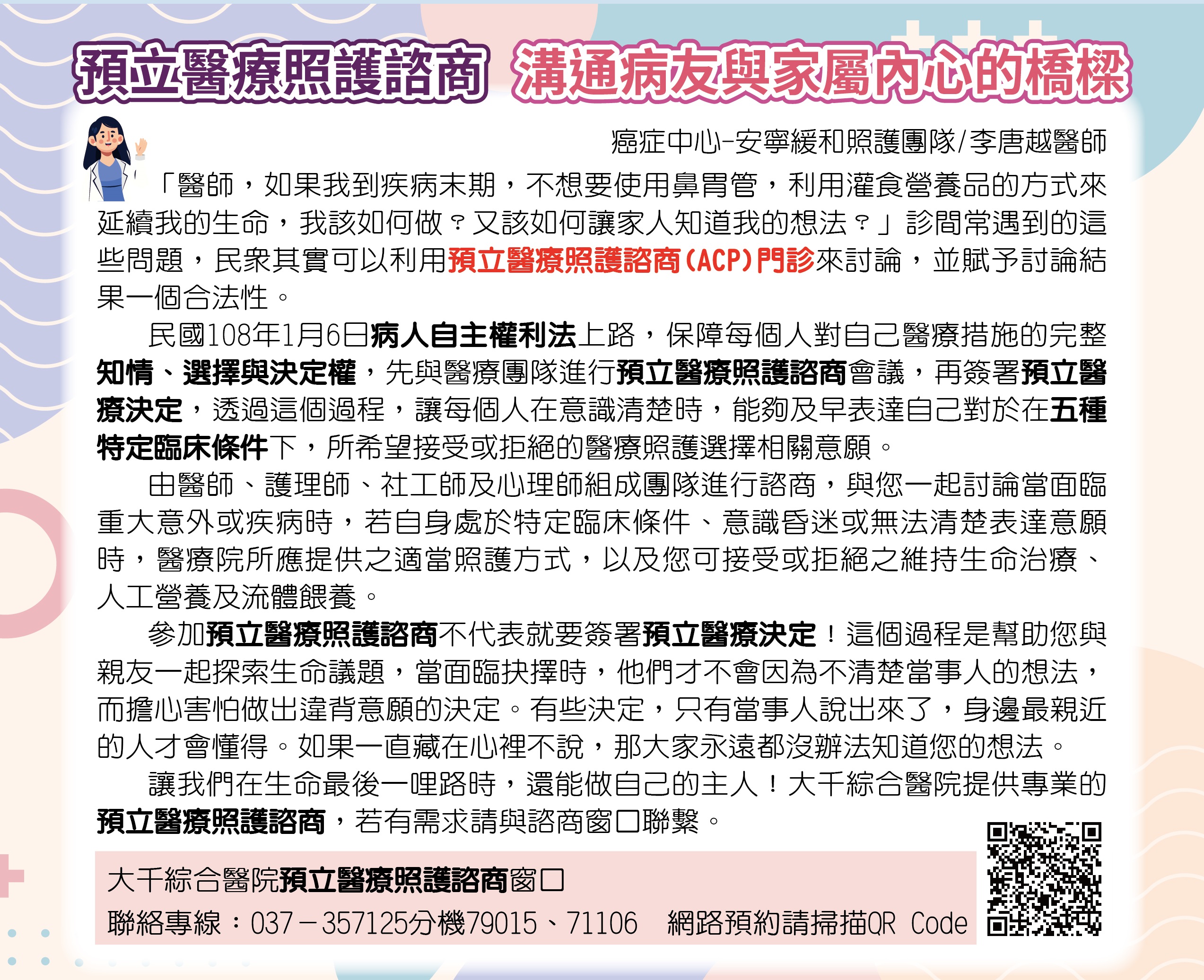 預立醫療照護諮商 溝通病友與家屬內心的橋梁
