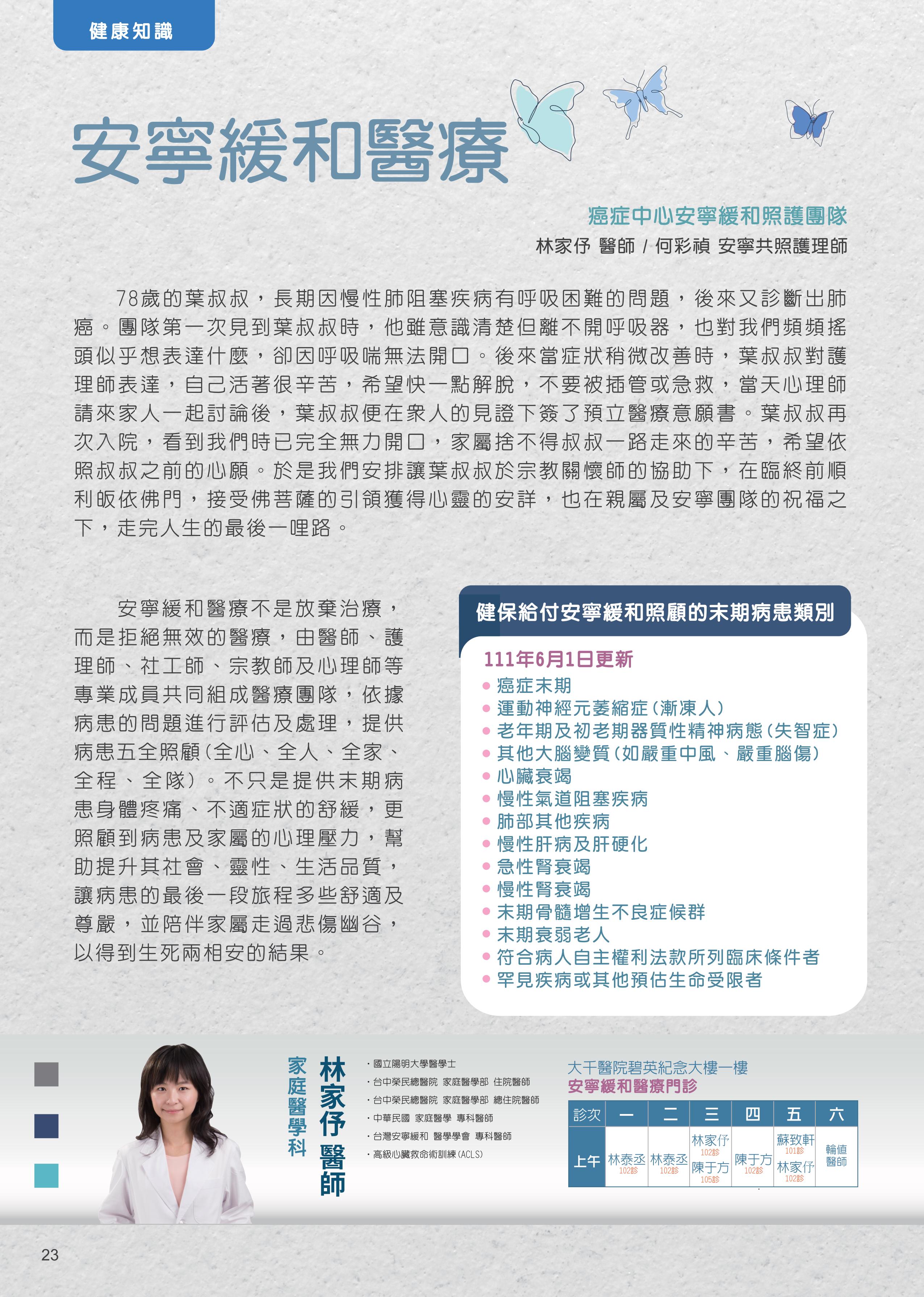 安寧緩和醫療 讓末期病人能準備好說再見