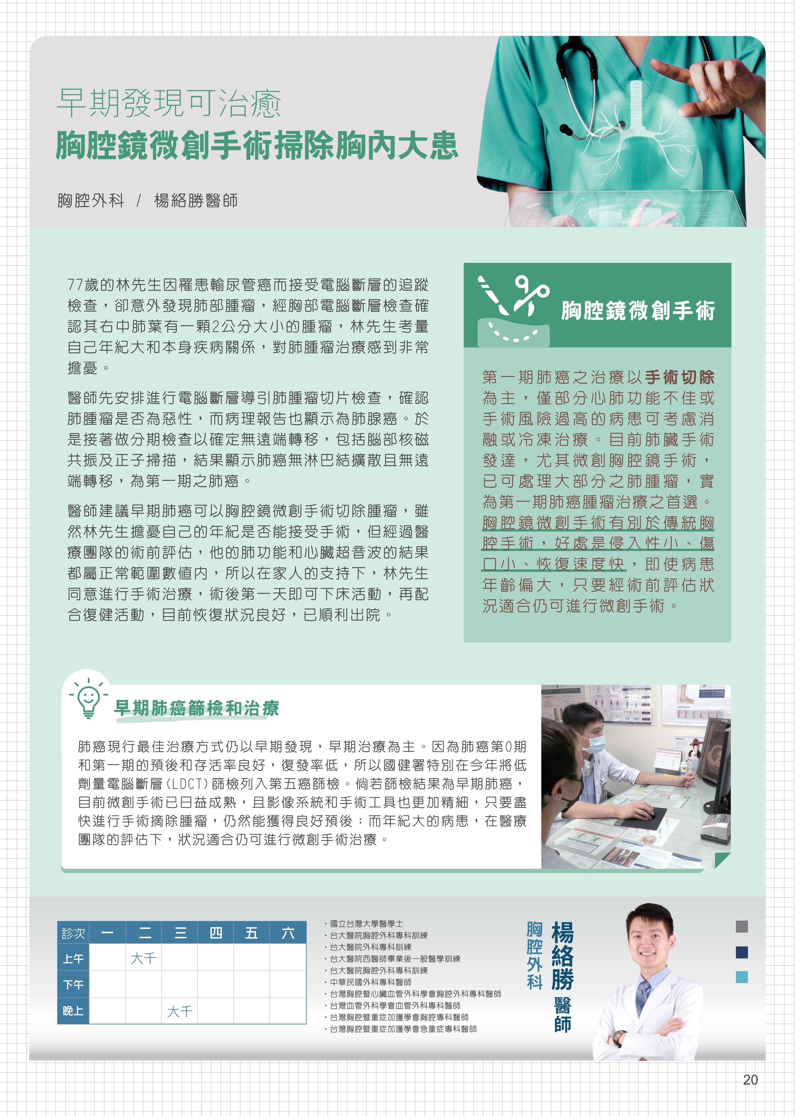 早期發現可治癒 胸腔鏡微創手術掃除胸內大患