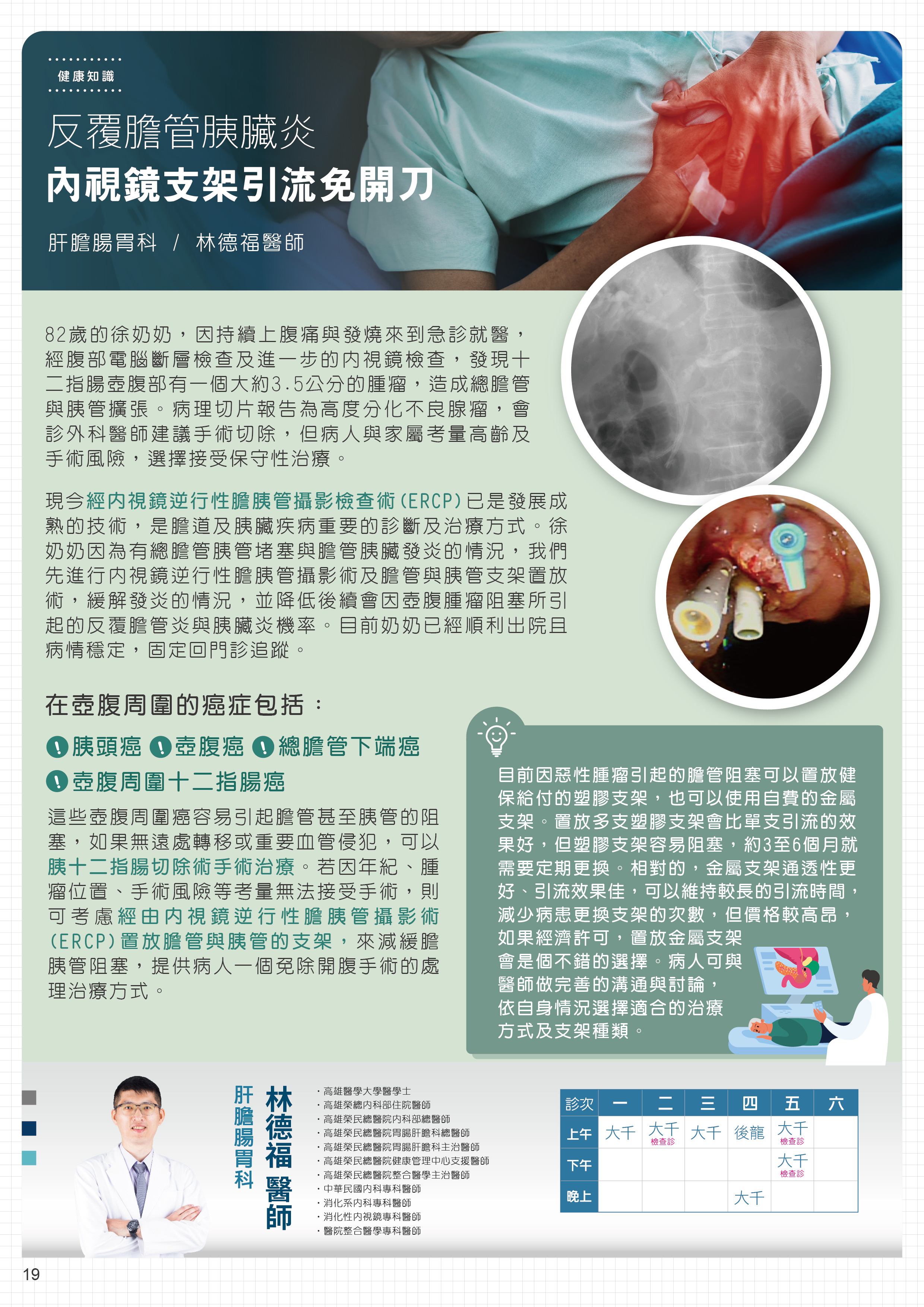 反覆膽管胰臟炎 內視鏡支架引流免開刀