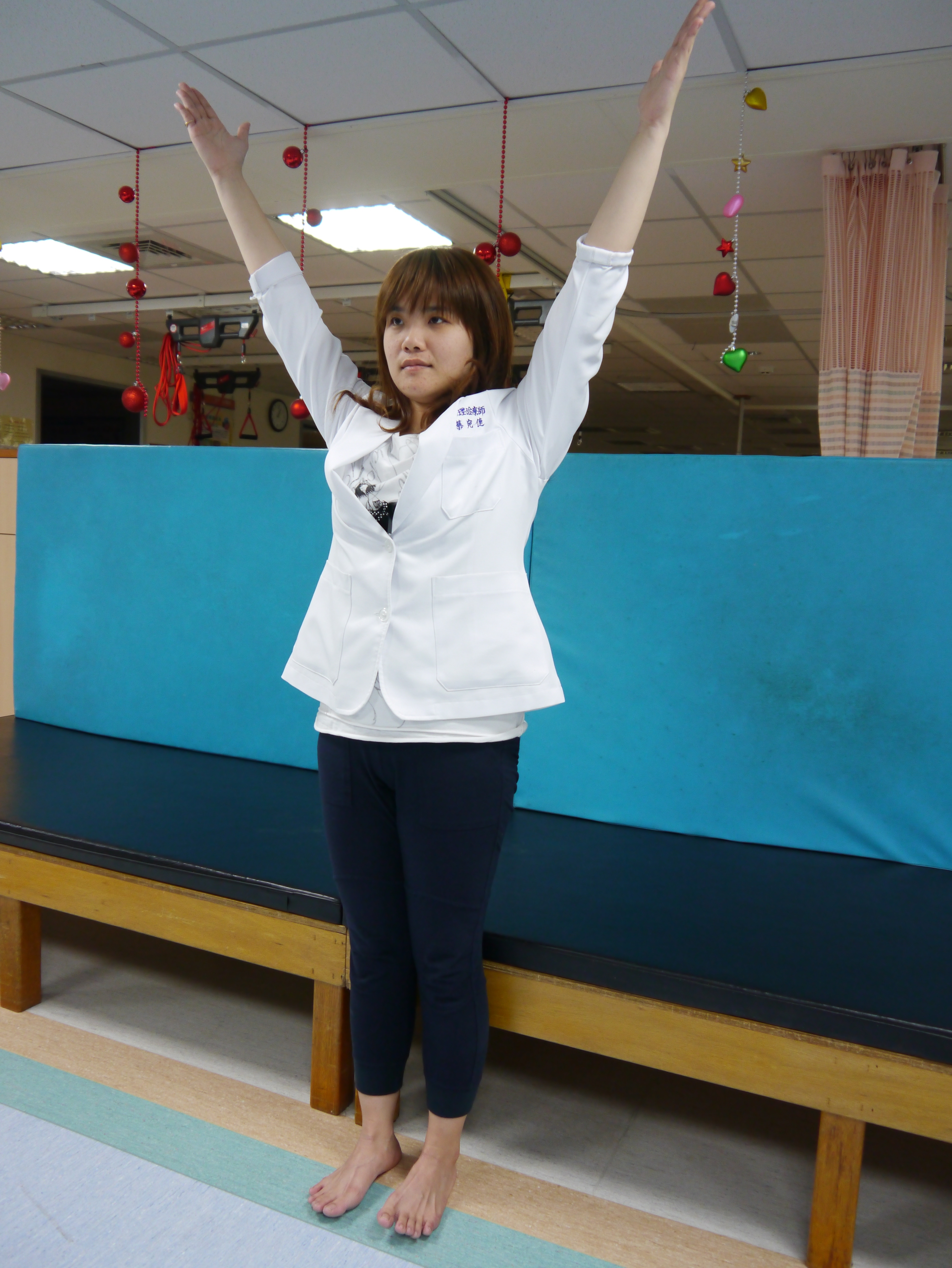 動作一︰手部運動,先將十指打開再雙手緊握,重覆抓握十次為一回合,連續做三回合,此運動可以增加手部肢體末梢循環。