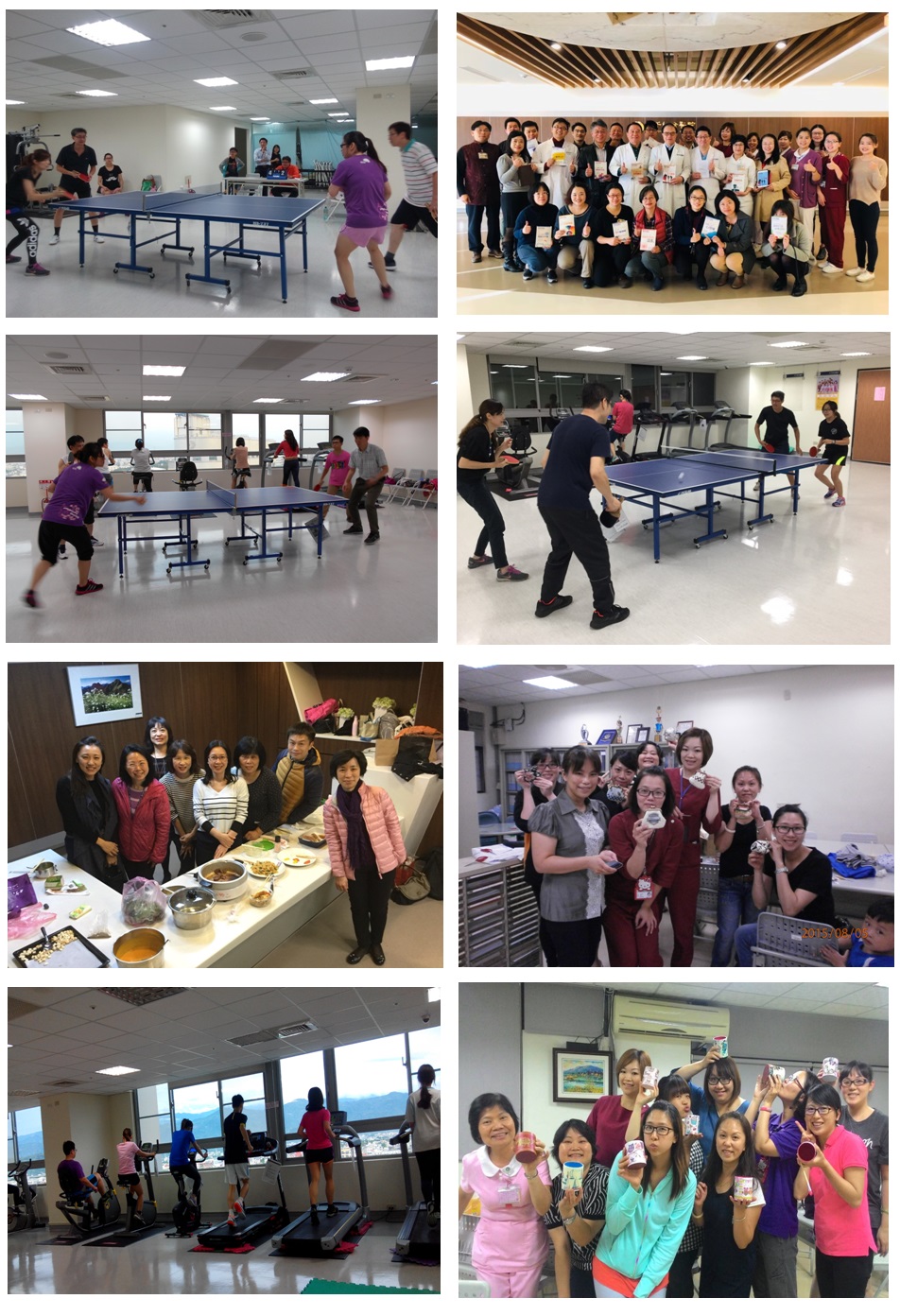 職前訓練( 各專業領域技術與專業培訓)、在職訓練(臨床實務訓練、各職能進階制度)、ACLS訓練(每年舉辦)、每月全院性共識教育、鼓勵在職進修、與各大專院校產學合作課程