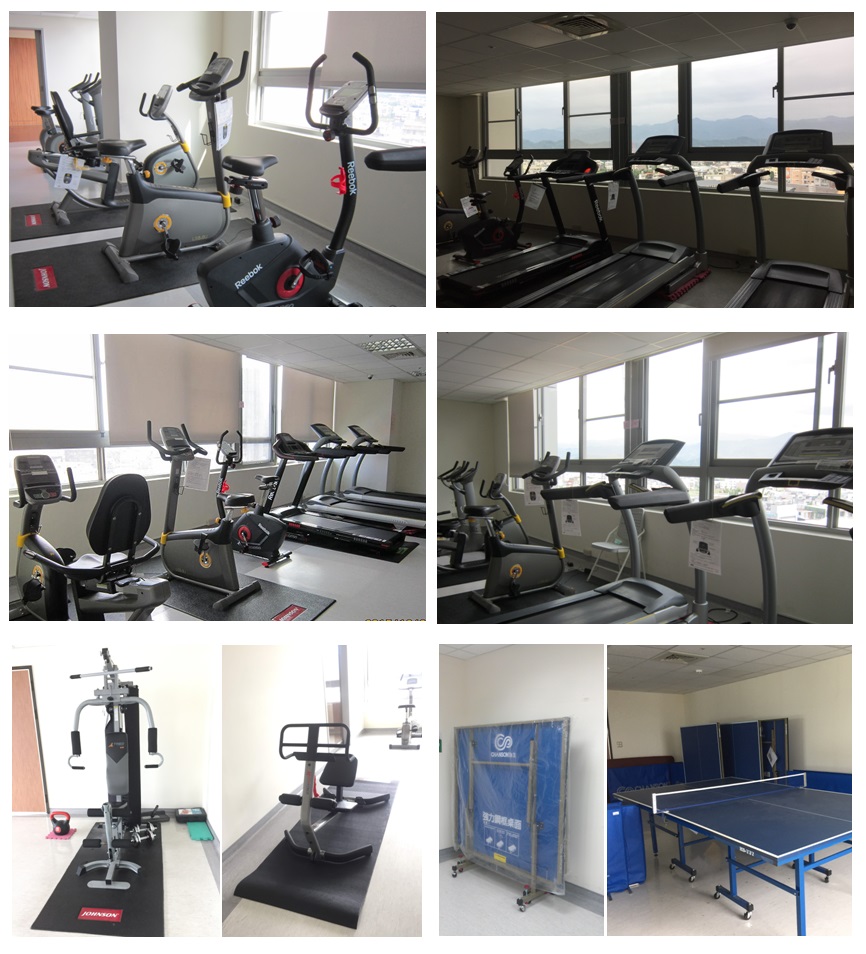 設備有:跑步機、健身車、多功能重量訓練機、多功能伸展機及桌球桌。